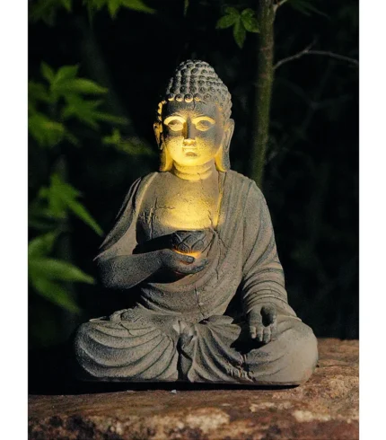 Resin Solar Buddha Statue Sculpture Garden Decor Light Zen Asian Japanese Garden Decoration Outdoor Front Porch Patio Yard Home