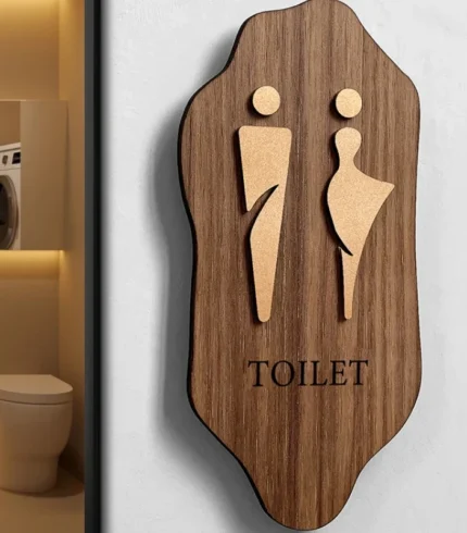 Wooden Signage Toilet Men’s and Women’s Restroom Signage Hotel WC Toilet Wall Sticker Bathroom Instruction Sign Home Decoration